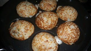 Appam can be prepared as a spicy / salty and sweet dish as well. Appam is cooked in a special pan which is called Appam Chatti. The pan has small round slots to pour batter to fry.